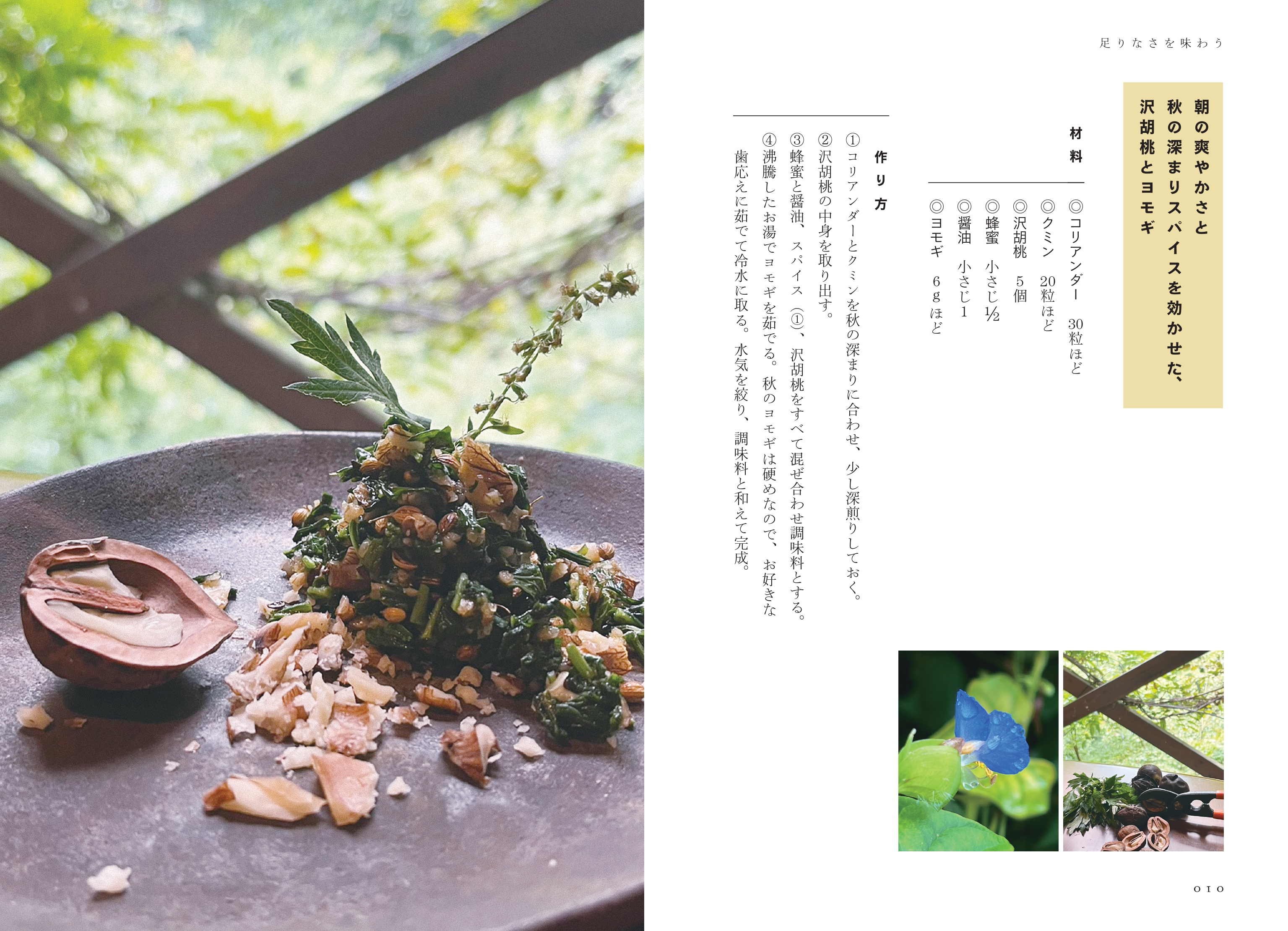 朝の爽やかさと秋の深まりスパイスを効かせた、沢胡桃とヨモギ