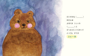 寝る時間になると「くまさん読んで〜」と自分から『よるくまシュッカ』を読んで欲しがるようになりました。