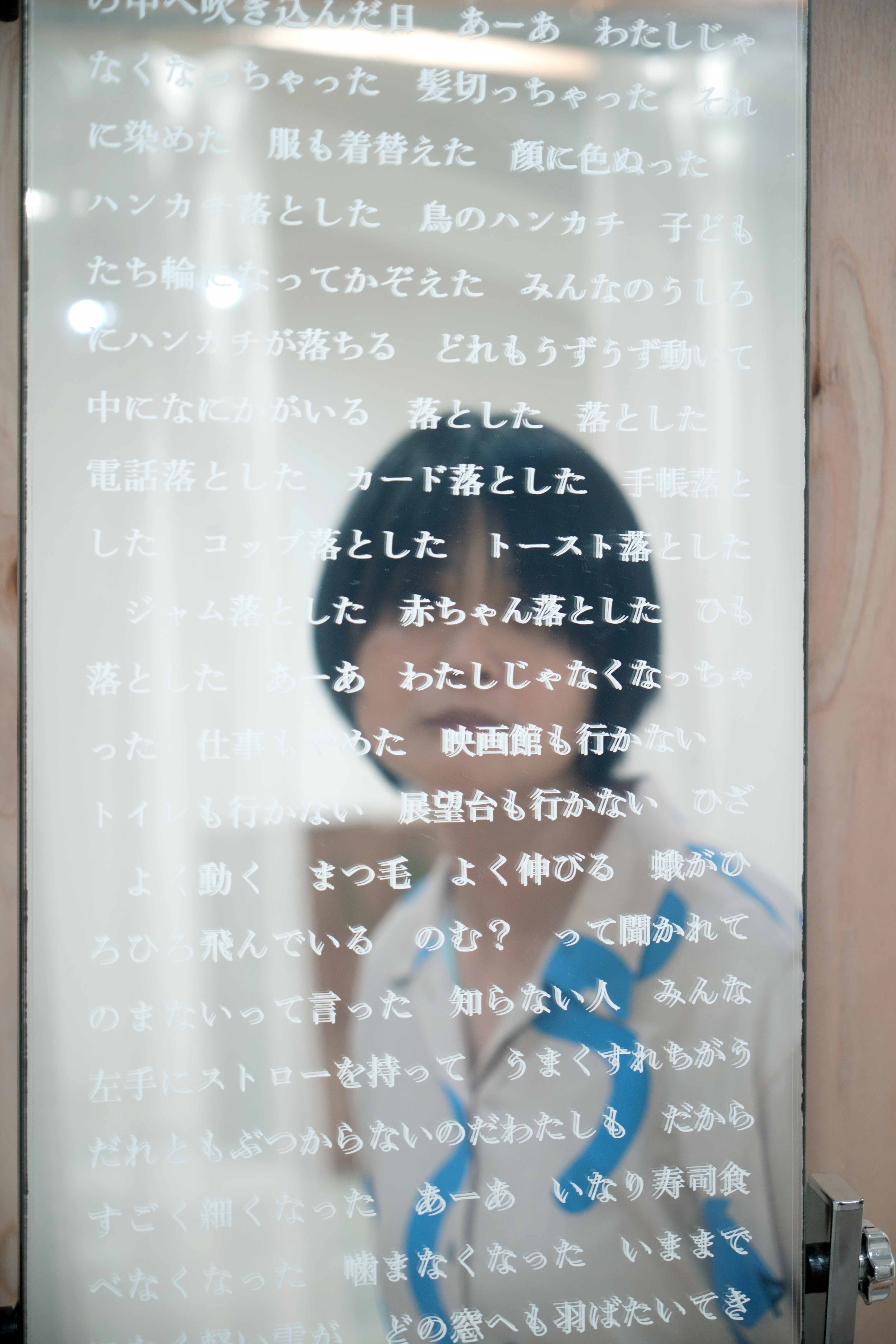 くじら 人間の目が読む都合で、行を折り返しているんですけど、散文だと「(人間が読みやすくするために折り返した)長い一行だな」と思うんです。だから面ではなくて(文章は)線。今回の展示も、自分としては(面ではなく)線の立体化ですね。だから、そういう意味で言うと、壁に詩を書くのは(線ではなく)面として言葉を意識する感覚がありましたね。